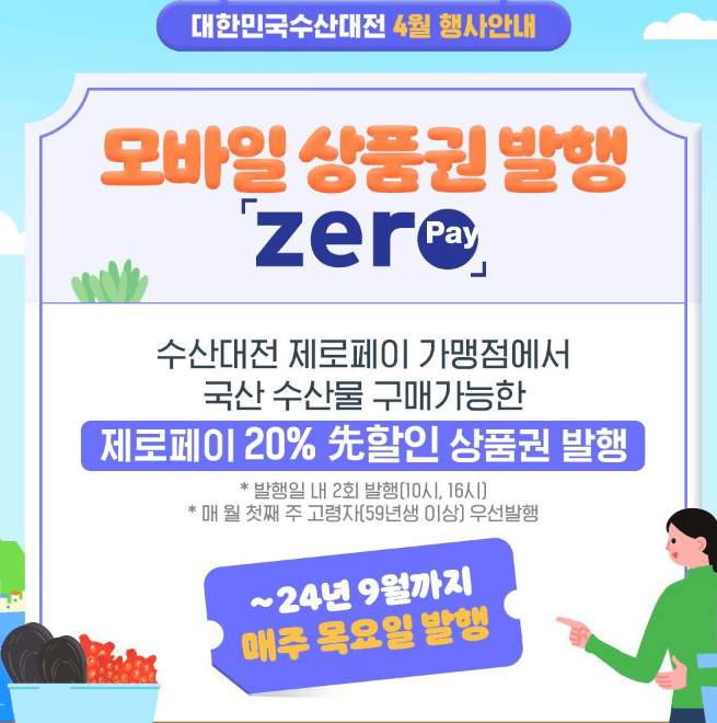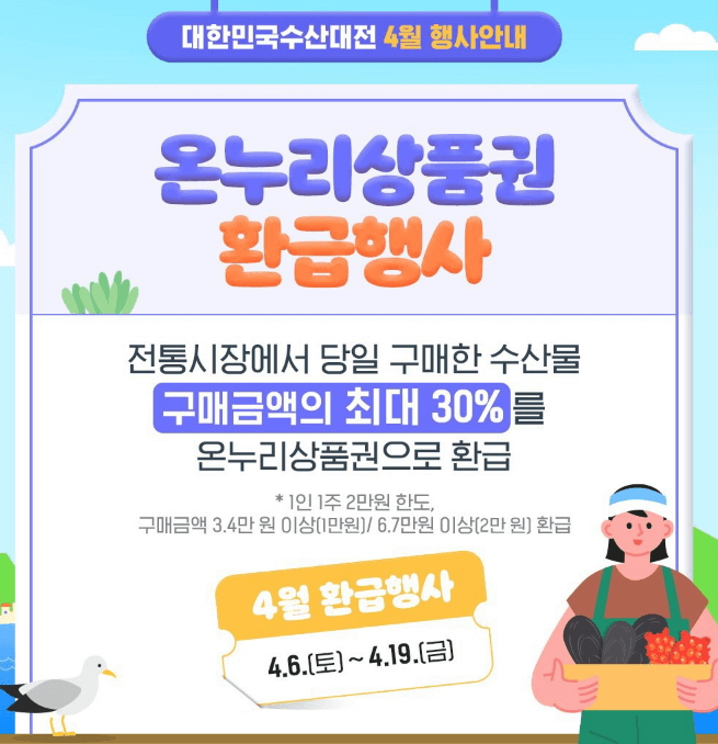 4월 매주 목요일마다 20% 할인된 수산물 상품권을 구입할 수 있습니다.